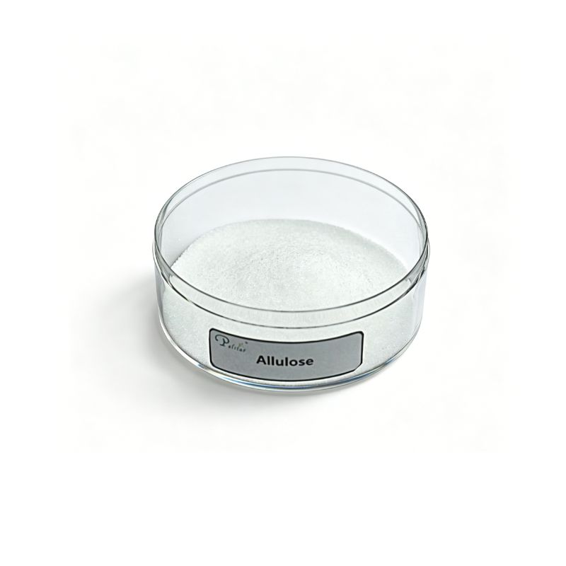 L'allulose est un additif édulcorant alimentaire , une poudre cristalline blanche, inodore et d'apparence similaire au saccharose . Sa solution aqueuse est incolore et transparente. Le produit principal sur le marché est le D-allulose, qui a une douceur pure et douce sans aucun arrière-goût ni saveur métallique. Sa douceur est d'environ 70 % celle du saccharose et son goût est très similaire à celui du saccharose. Il est facilement soluble dans l'eau, légèrement soluble dans le méthanol et l'éthanol et insoluble dans les solvants organiques tels que l'éther et l'acétone. Il a une bonne stabilité thermique et convient à la transformation des aliments et des boissons, à la gestion de la santé et aux produits de santé bucco-dentaire.